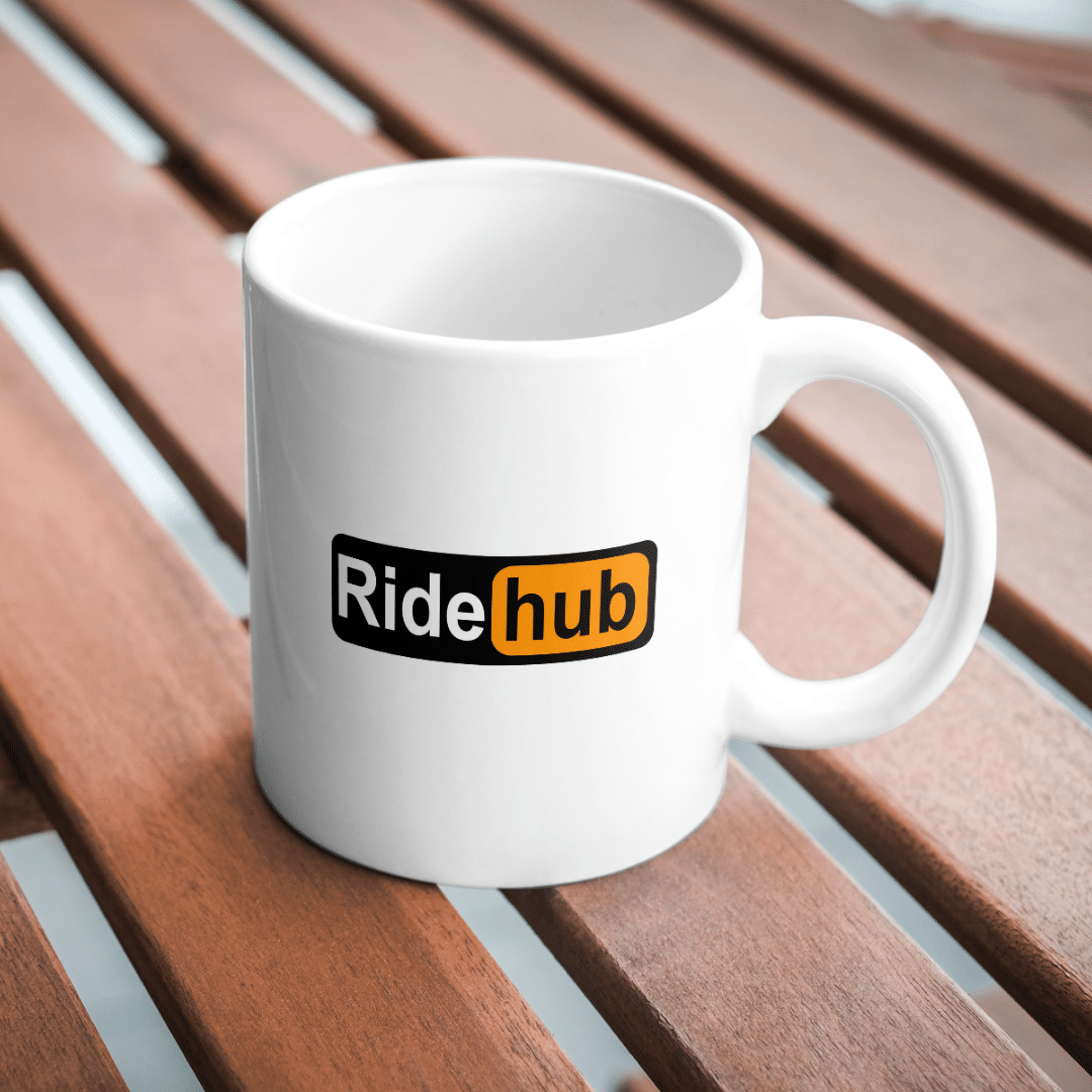 Affichez votre passion avec ce mug RideHub, un clin d’œil subtil et humoristique à une plateforme bien connue.
